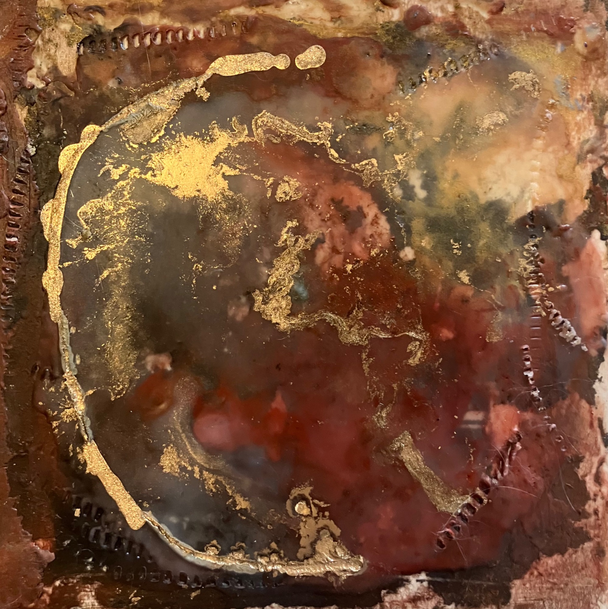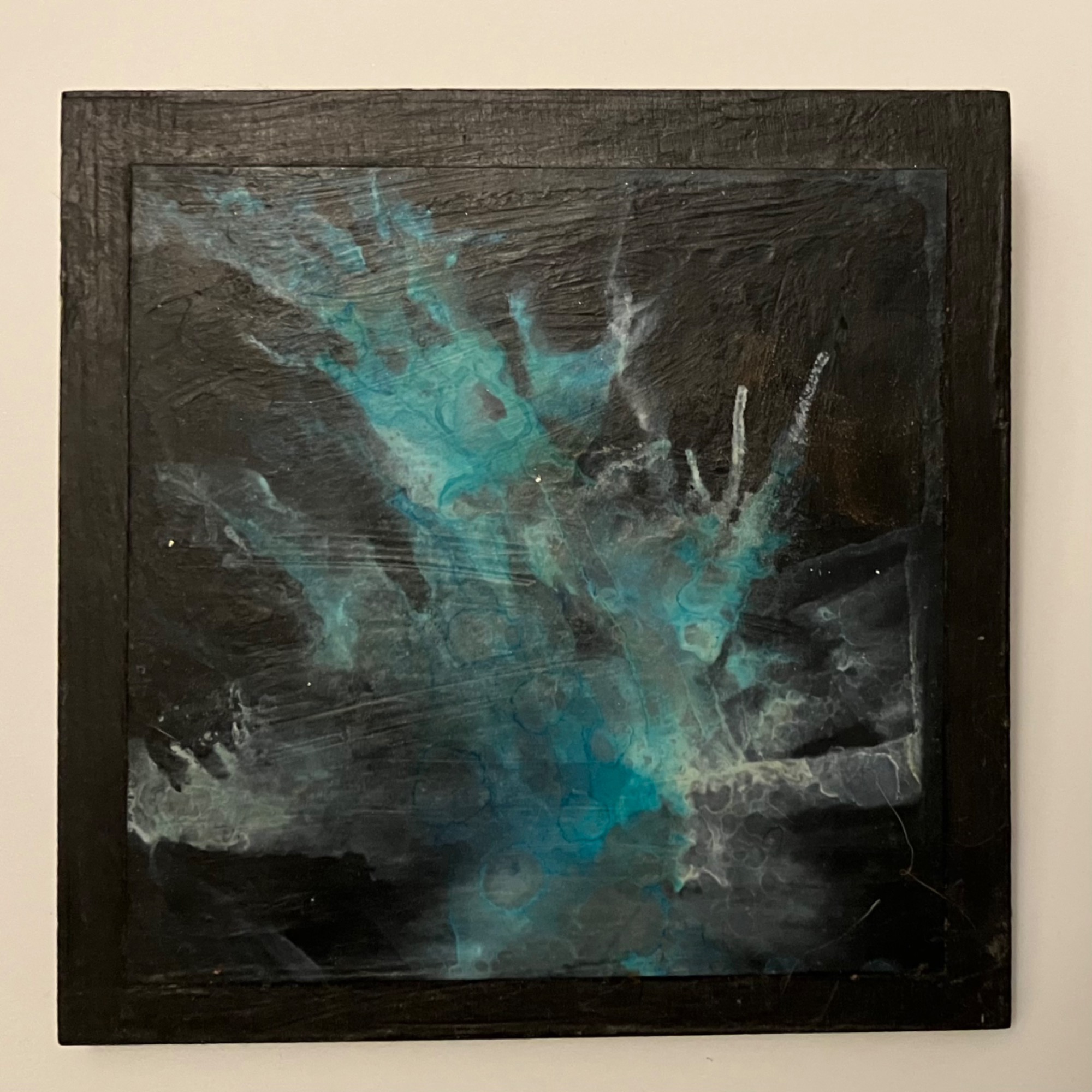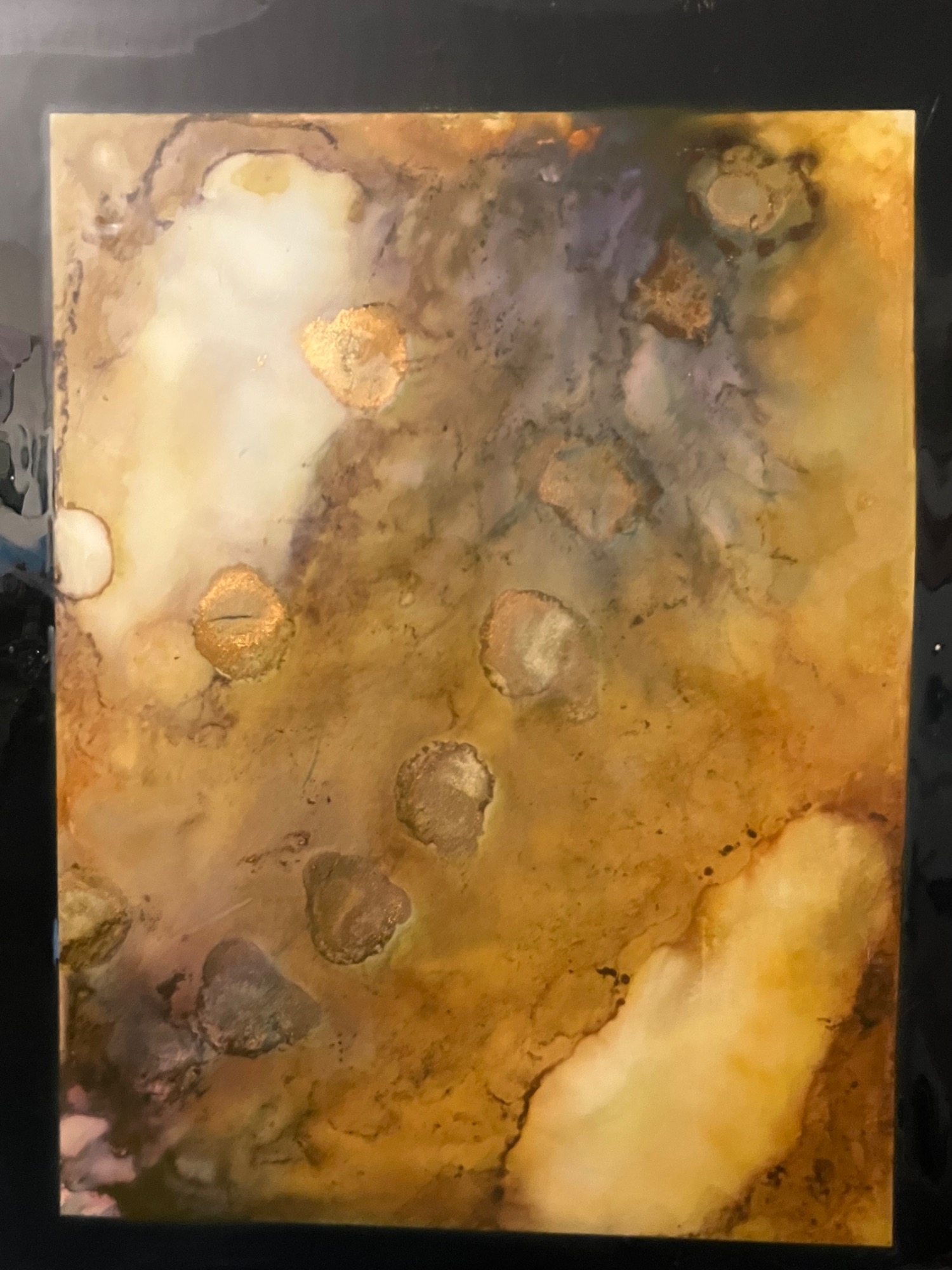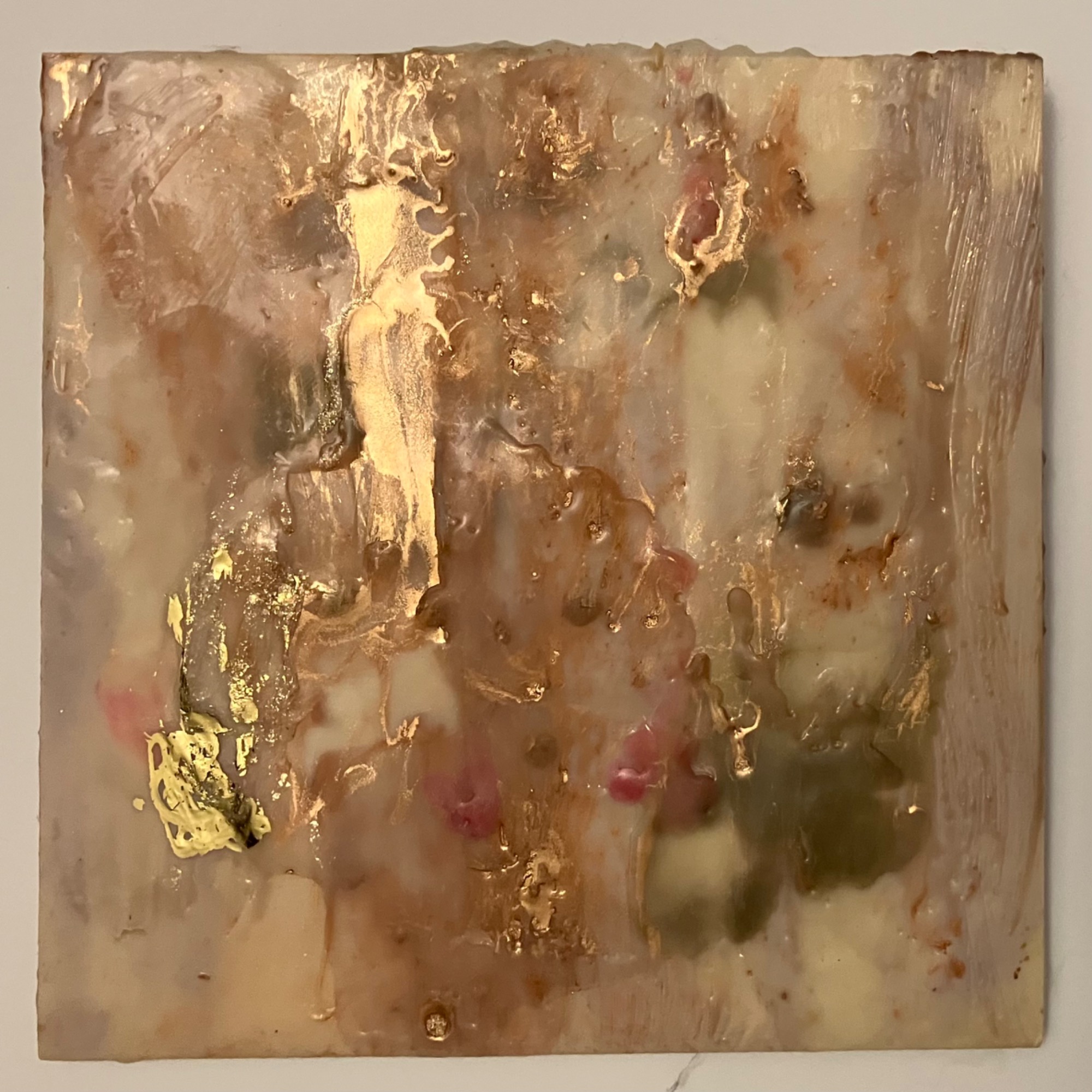 Beeswax melted over acrylic or alcohol inks on wood panels