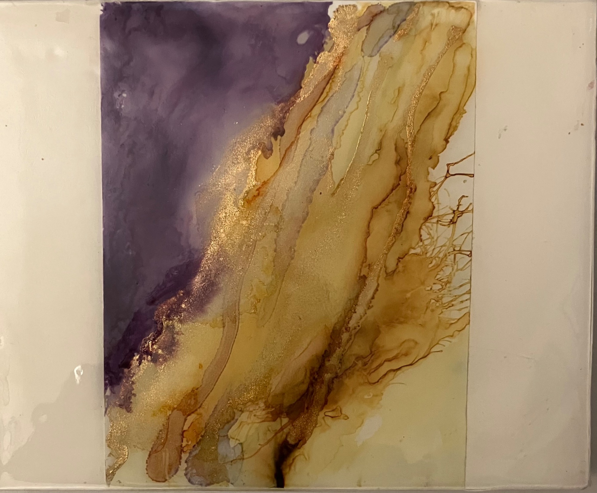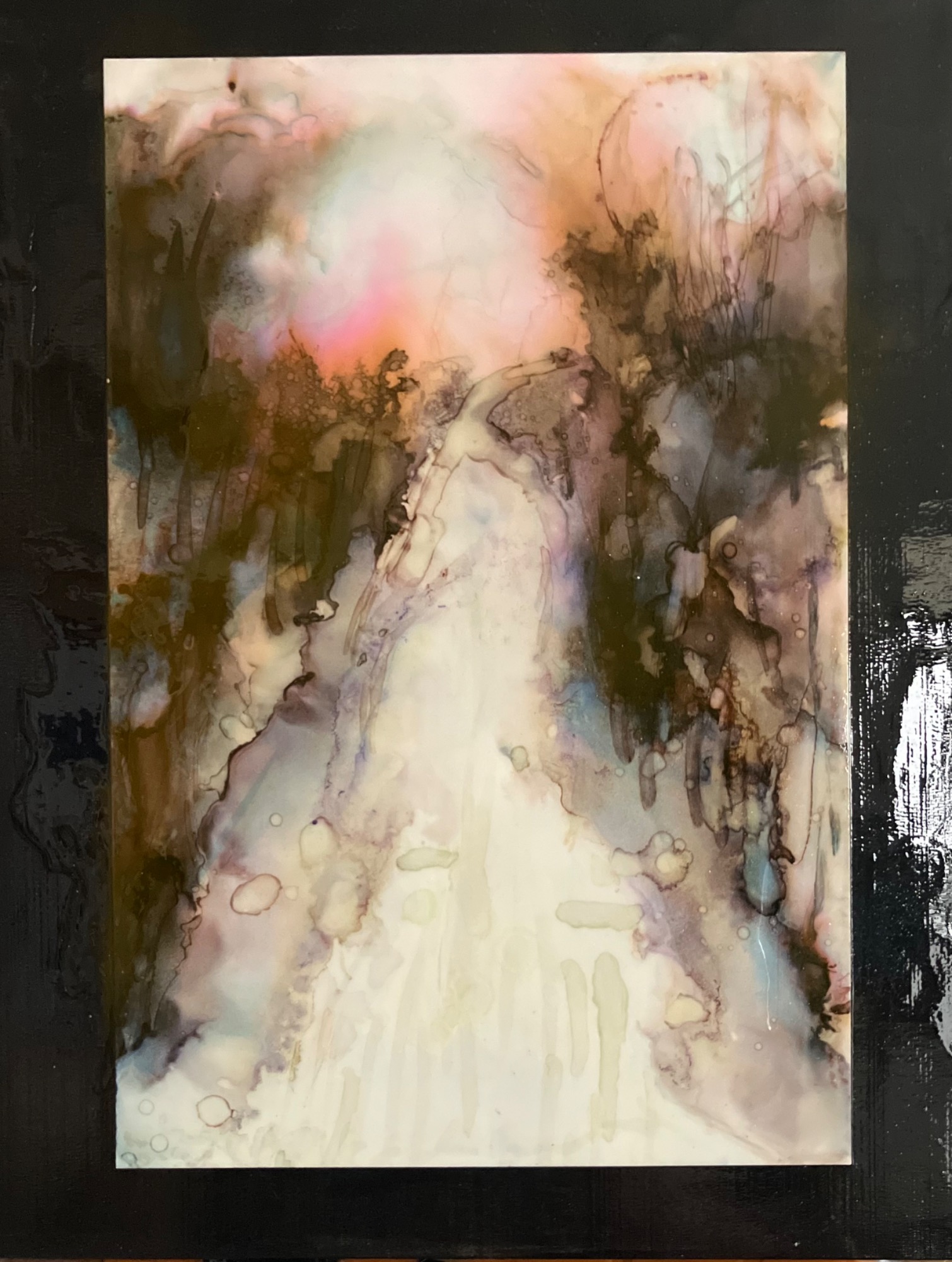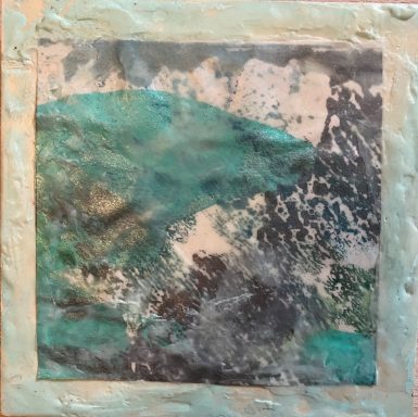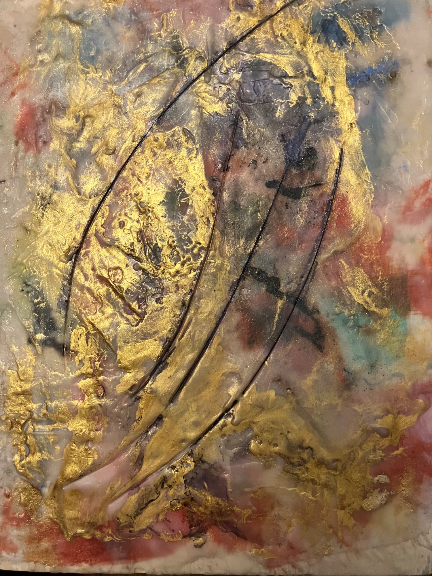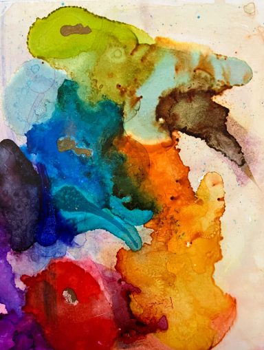 Beeswax melted over acrylic or alcohol inks on wood panels