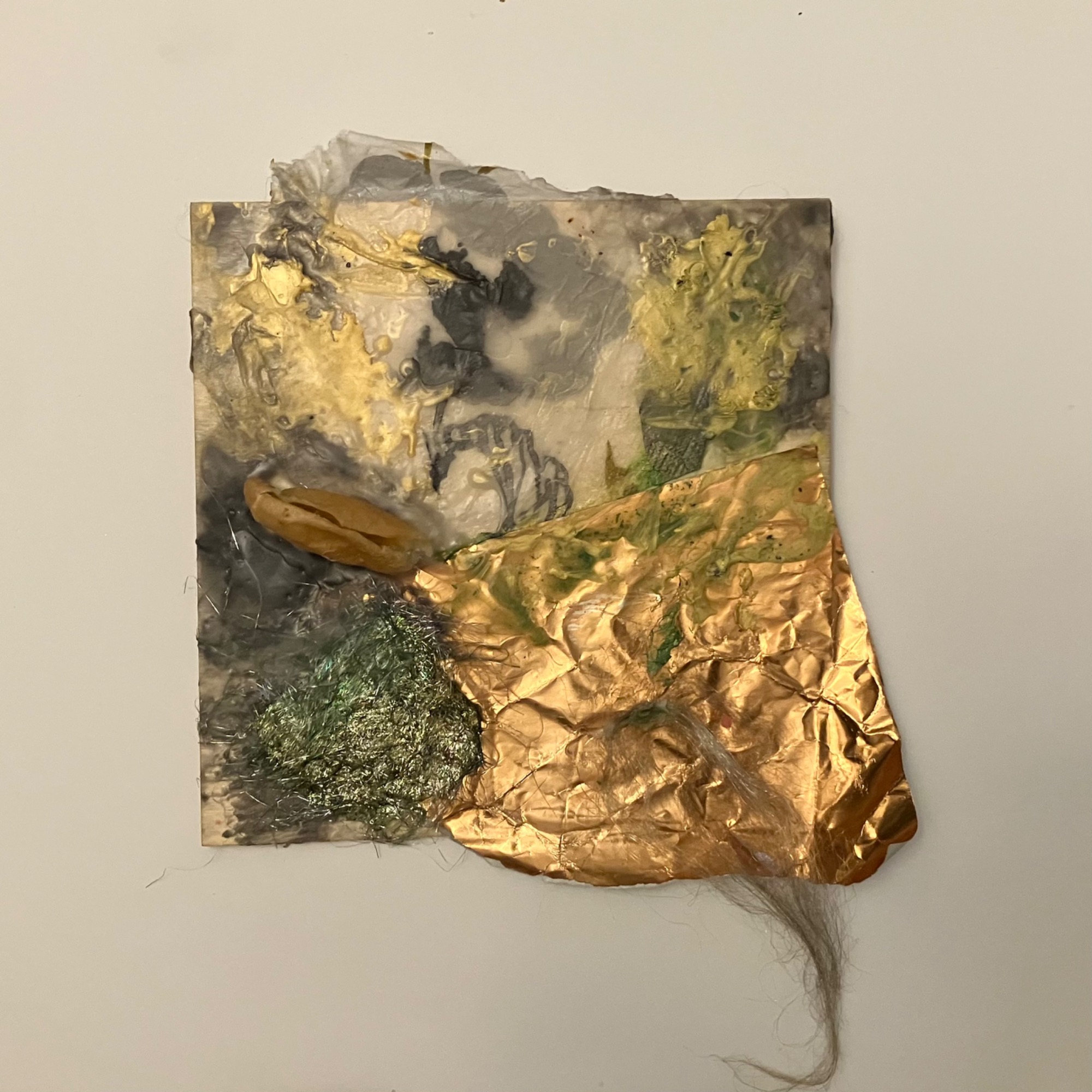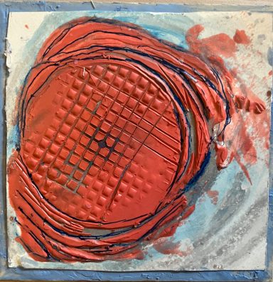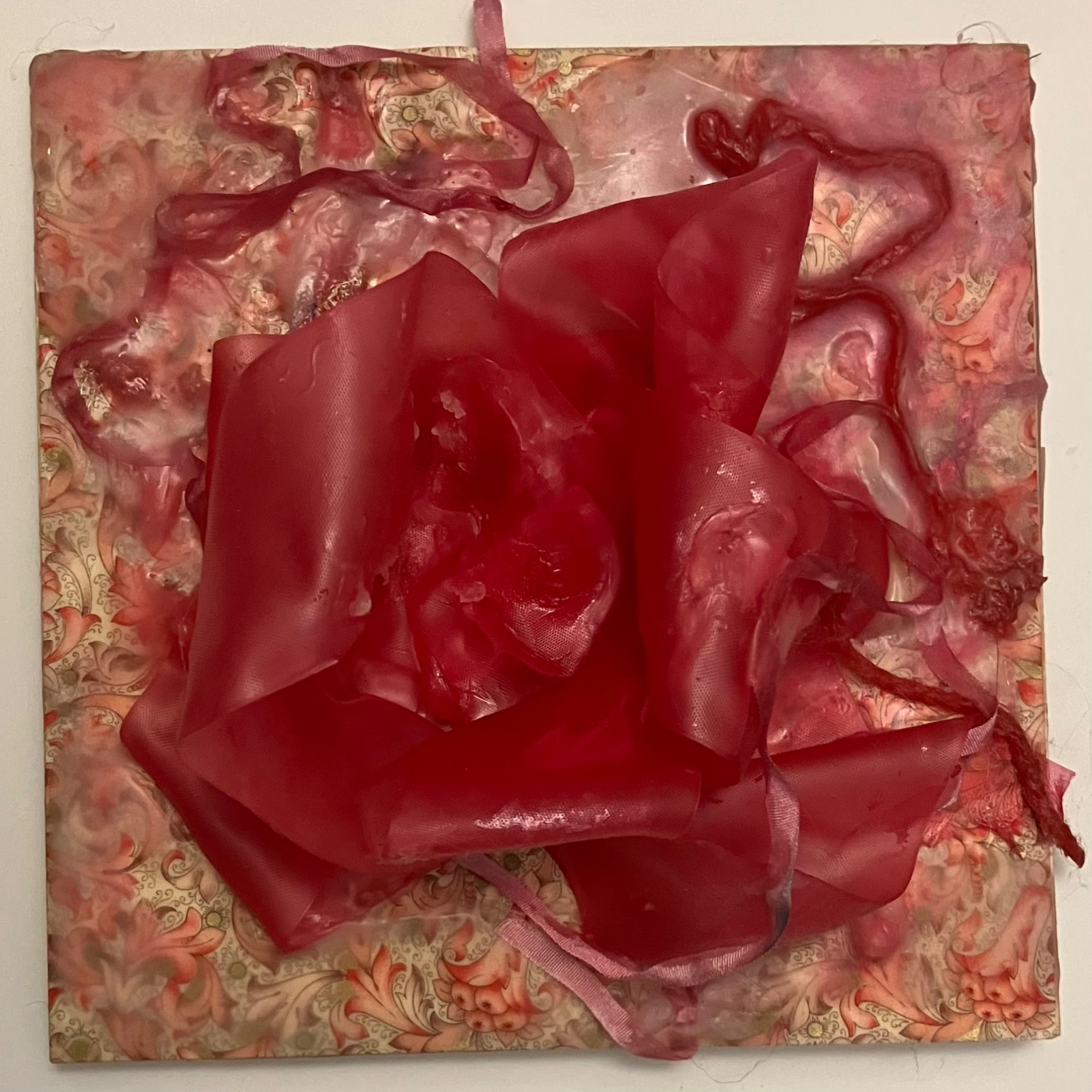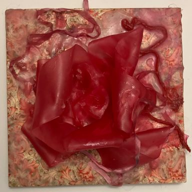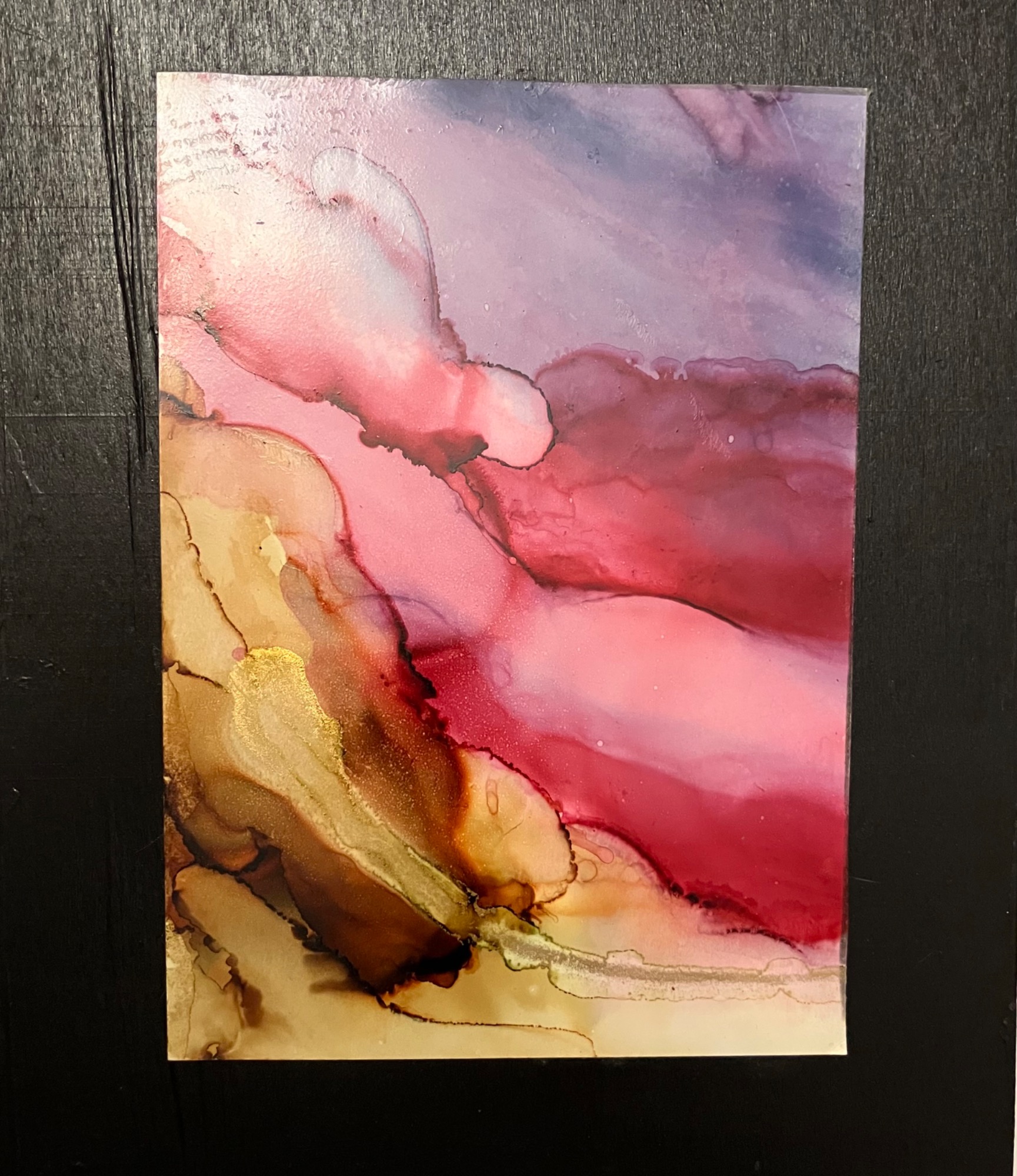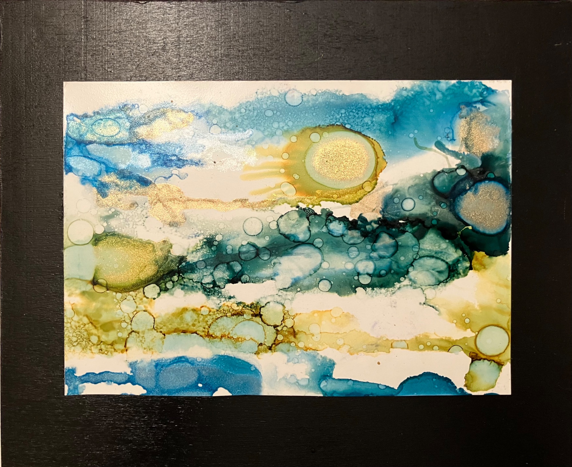 Beeswax melted over acrylic or alcohol inks on wood panels